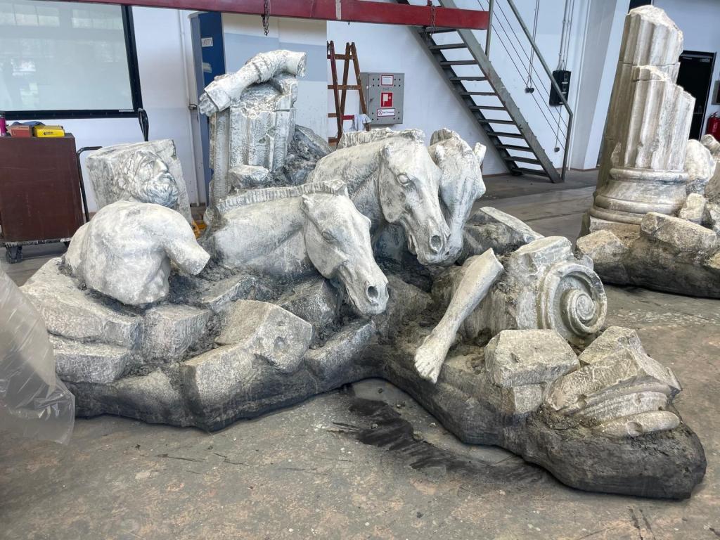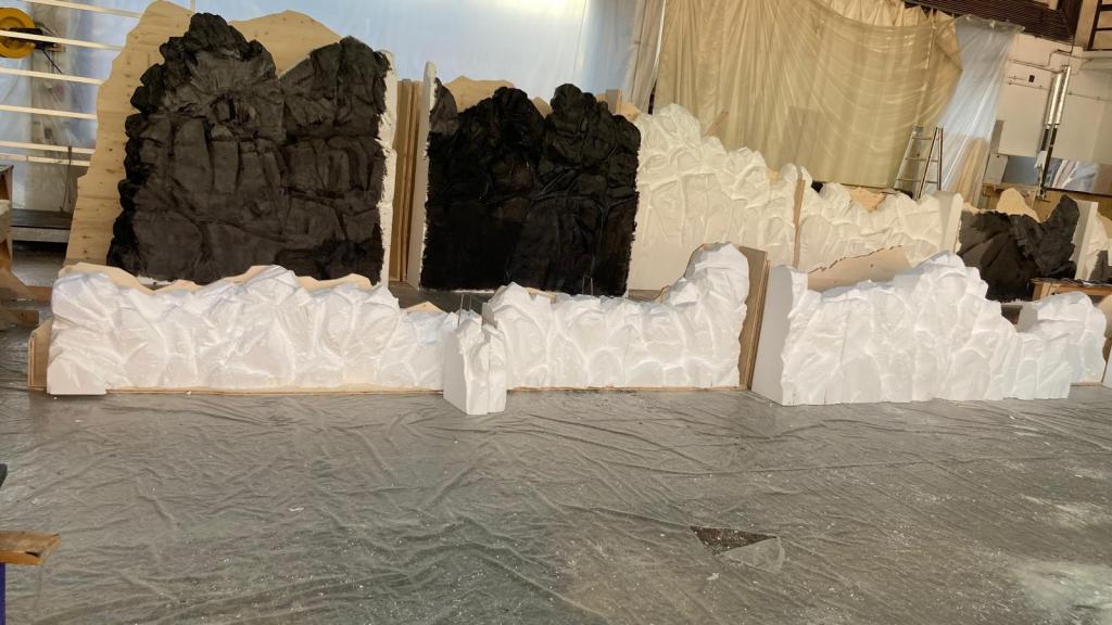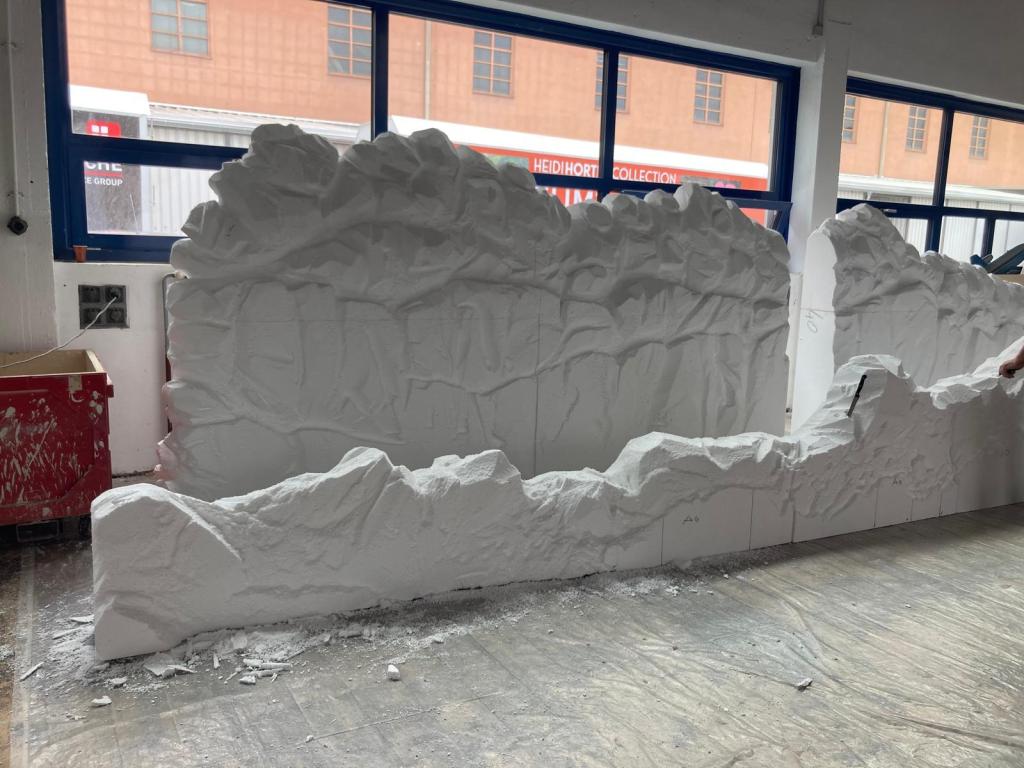 Structure and support of the ruins: polystyrene (Styrofoam), PU foam, wood