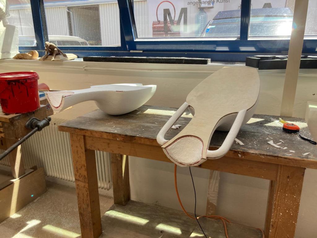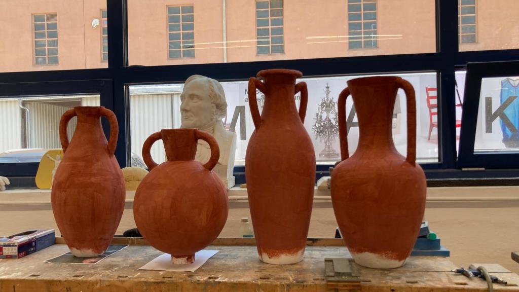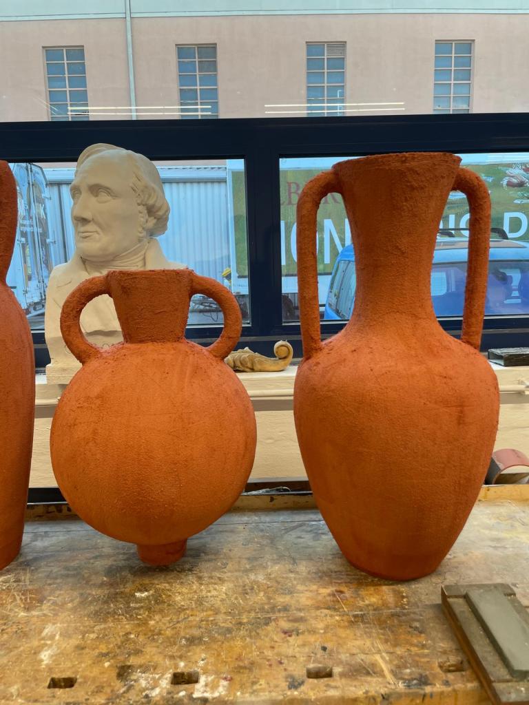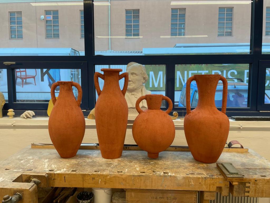 Forming the ceramic amphorae : polystyrene (Styrofoam), PU foam, wood