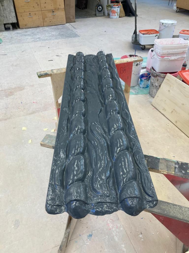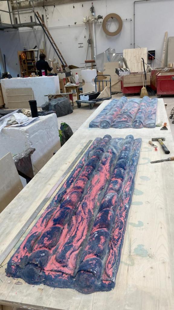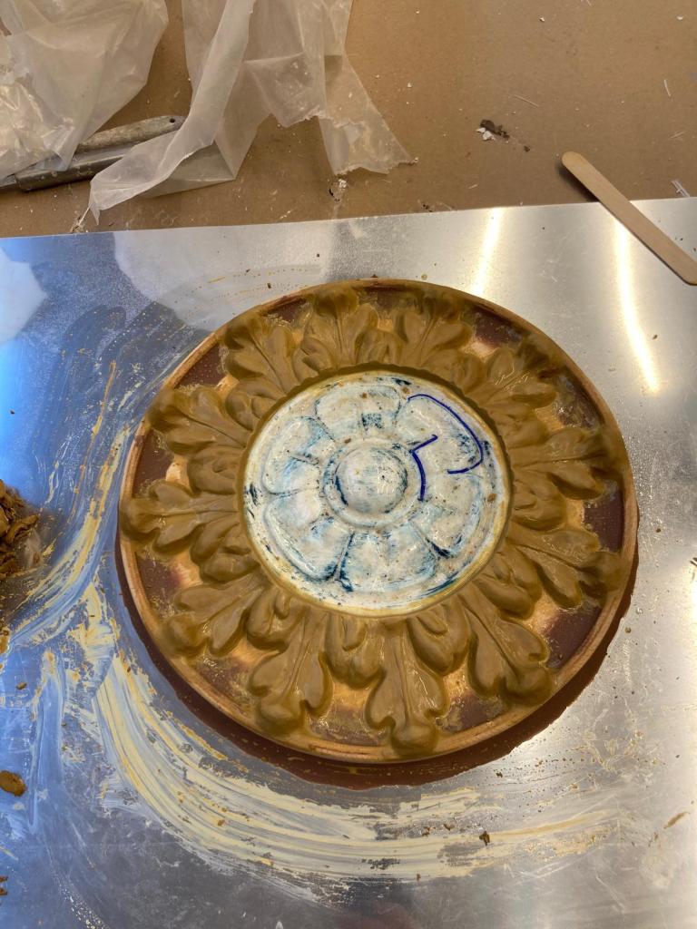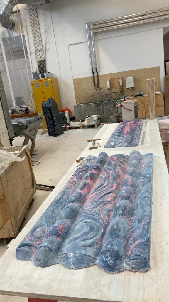Forming and finalizing the ornaments: clay, monster clay, neukadur resin, gips (mold), Acrylic one (positive), acrylic hydraulic thermoform, rubber, silicone.