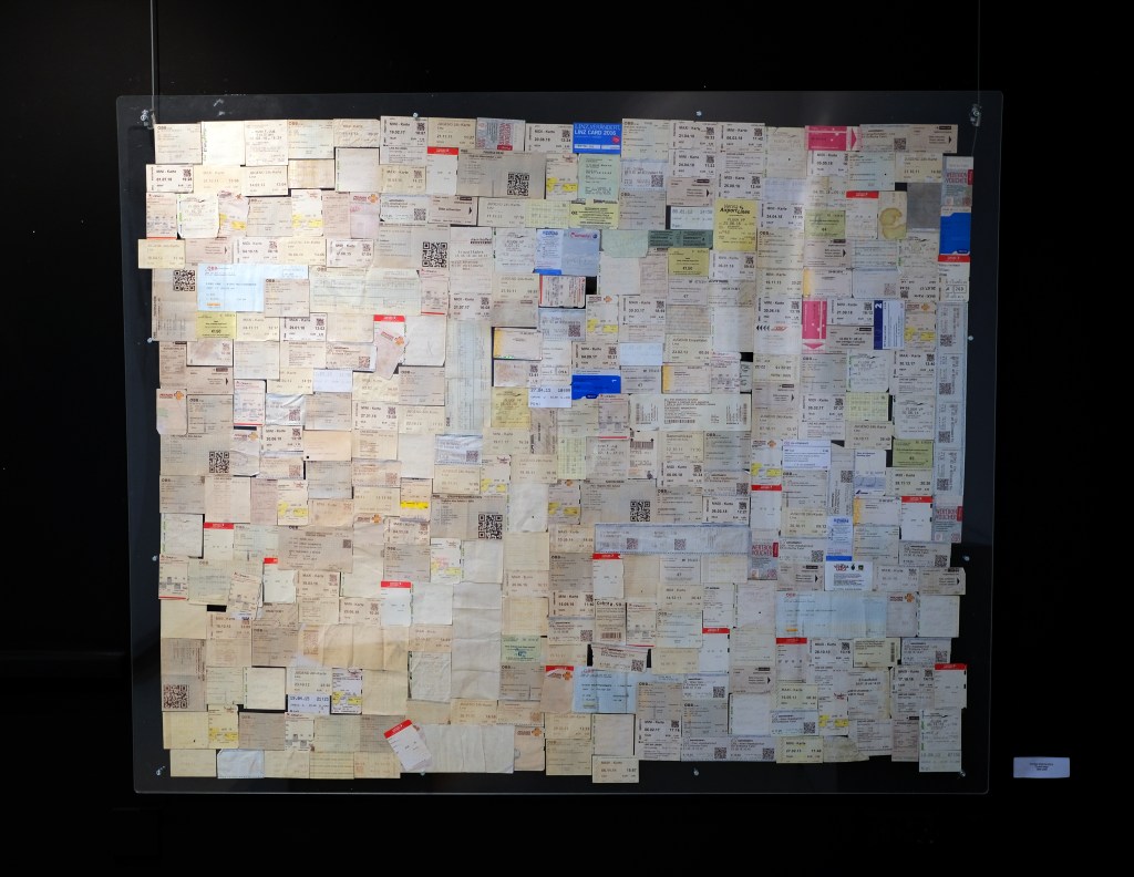 Travel tickets, plexiglas frame, 150 x 120 cm